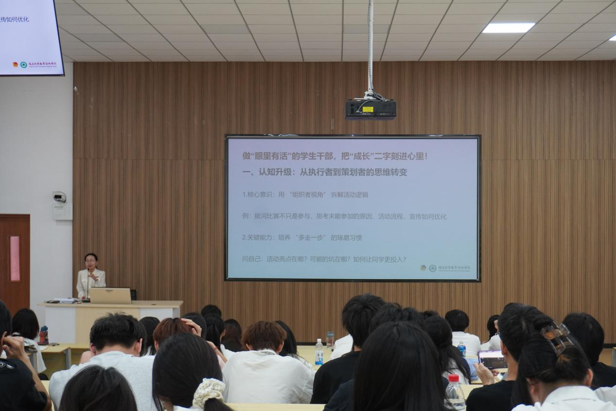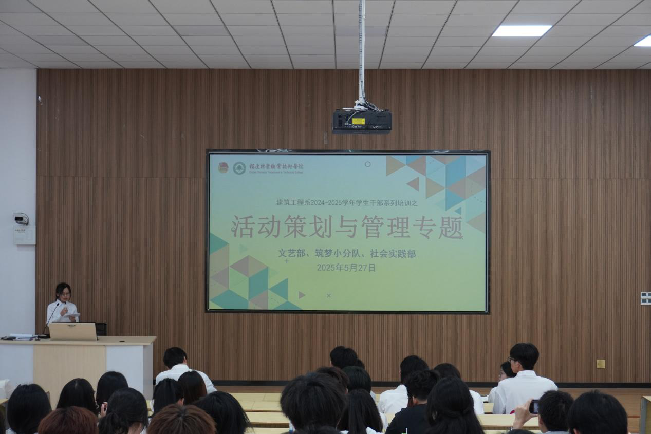 本网讯/为切实提升学生干部的活动策划与管理能力,打造高质量学生活动,2025年5月27日,建筑工程系在阶梯教室二开展学生干部系列培训第四专题——“活动策划与管理”专题培训。本次培训由建筑工程系文艺部部长李秋欣、筑梦小分队负责人闫婷婷、社会实践部部长张苗联合主讲,通过理论讲解、案例分享相结合的形式,为参训学员带来一场内容丰富、极具实操性的学习盛宴。