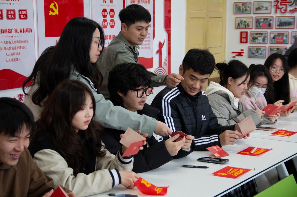 仪式结束后,考生党员用最真挚的文字书写祝福卡,经随机分发后,每张卡片都承载着最美好的祝愿,纸短情长,言浅意深。这场祝福接力,不仅展现了建工学子互帮互助的优良传统,更以青春之名诠释了“奋斗路上,并肩同行”的深刻含义。愿所有专升本考生在考试中披荆斩棘,实现自己的梦想,开启人生新的篇章。