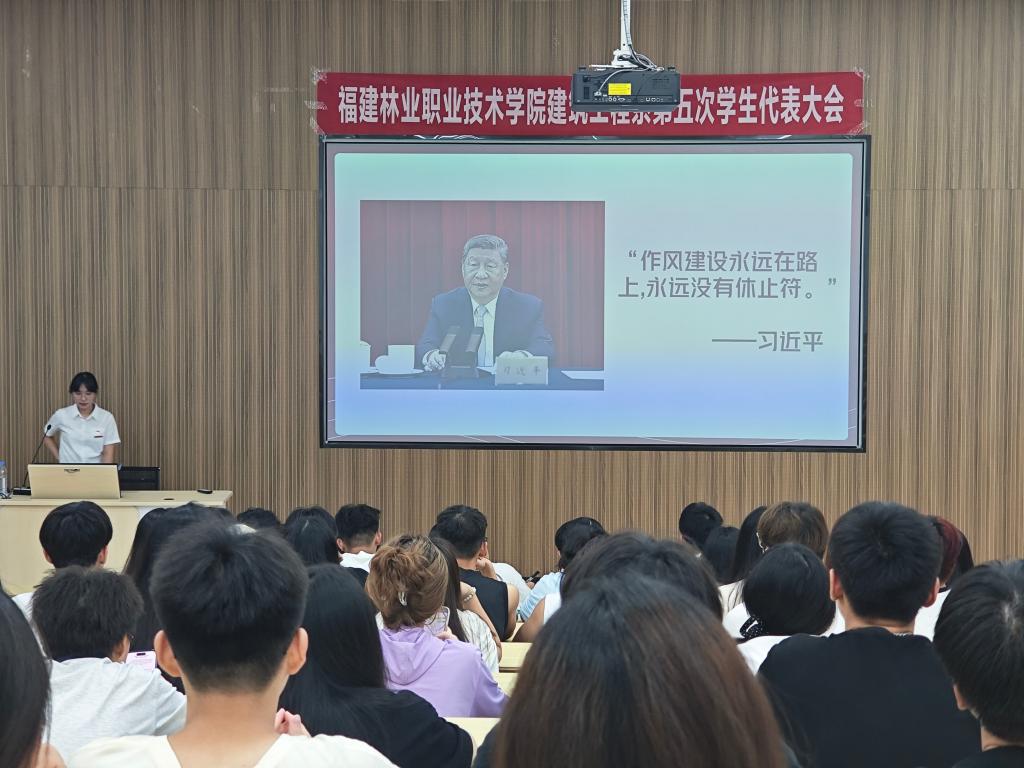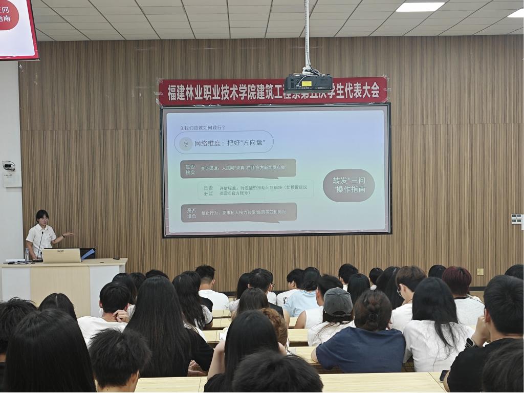 本网讯/为了深入学习贯彻习近平新时代中国特色社会主义思想,贯彻落实党的二十届三中全会精神,根据中共中央办公厅印发的《关于在全党开展深入贯彻中央八项规定精神学习教育的通知》,2025年6月25日,福建林业职业技术学院建筑工程系学生第一党支部在阶梯教室二开展《久久为功担使命,清风化入青春怀——从中央八项规定看新时代青年党员的作风锤炼与使命传承》专题党课。本次党课由建筑工程系学生第一党支部书记陈慧婷主讲,全体师生党员参加。