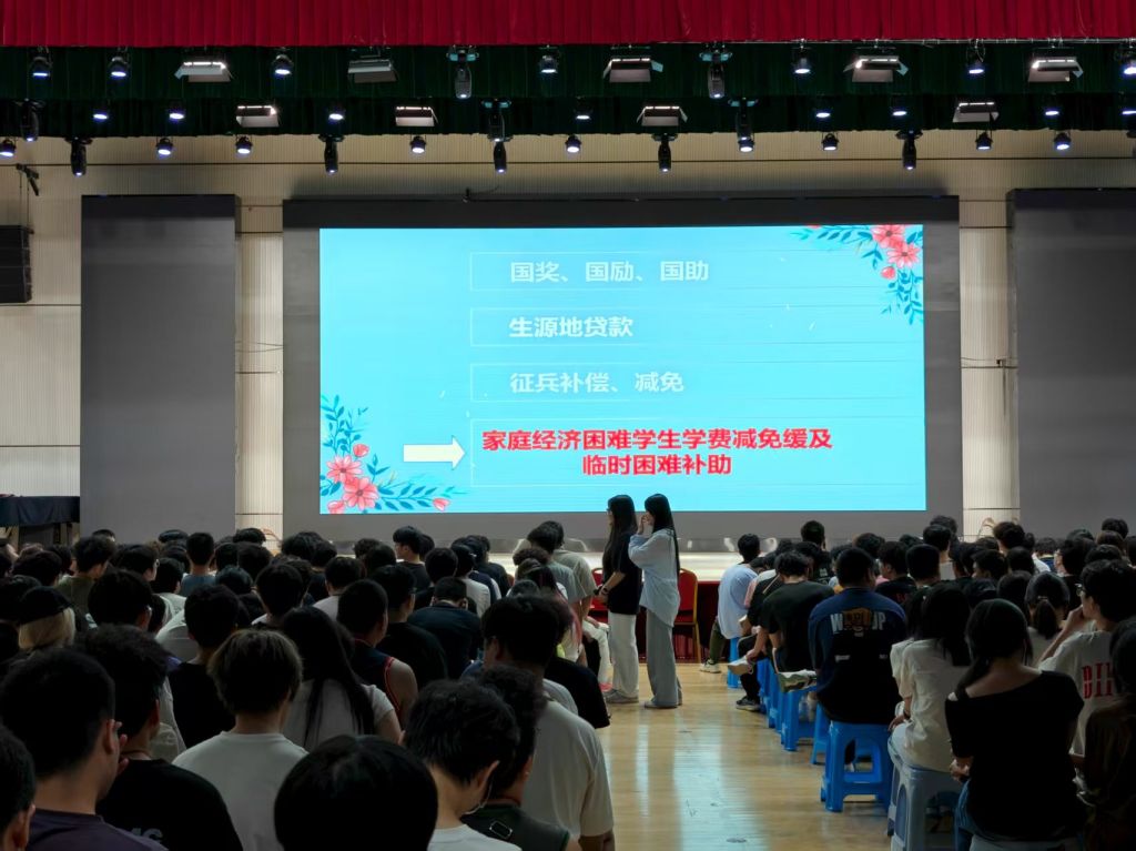 本网讯/为深入贯彻立德树人根本任务,精准落地国家与学校资助政策,将党和国家对家庭经济困难学生的关怀切实传递到位,助力新生快速融入大学生活,9月17日,建筑工程系在江南体育馆举办2025级新生入学教育之资助专题讲座,建筑工程系专职辅导员兼资助专员李楚楚老师担任主讲人。