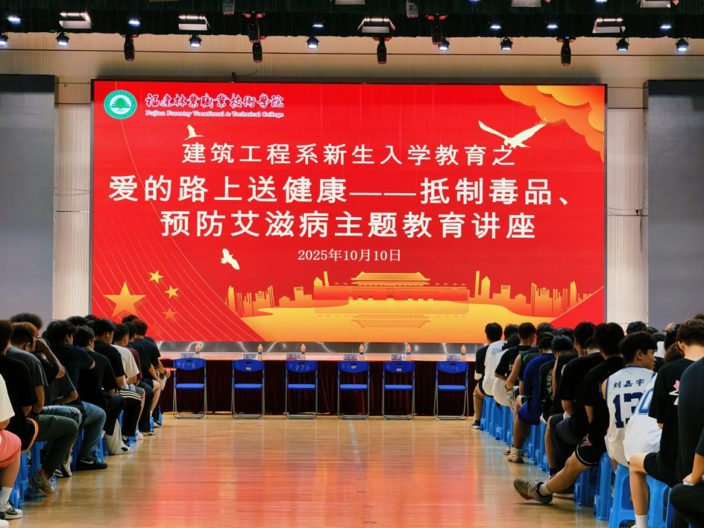 本网讯/为精准普及艾滋病防治知识,强化青年学生自我健康保护意识,筑牢禁毒防艾思想防线,树立珍爱生命的正确价值观,2025年10月10日,建筑工程系在江南体育馆举办“青春爱健康——抵制毒品、预防艾滋病”主题教育讲座。建筑工程系学生科科长兼团总支书记刘克芹及新生辅导员出席活动,系部全体2025级与2022级五年专在校生参加。讲座由福建省立医院南院妇产科主任辛长征主讲,爱之路慈善基金会志愿者李丹主持。