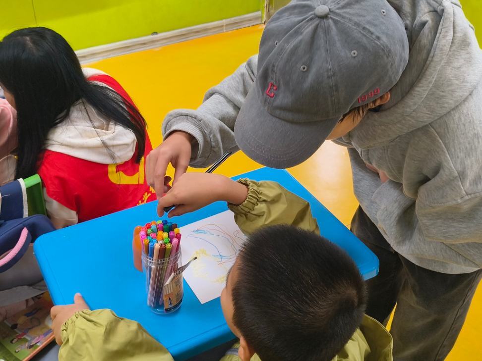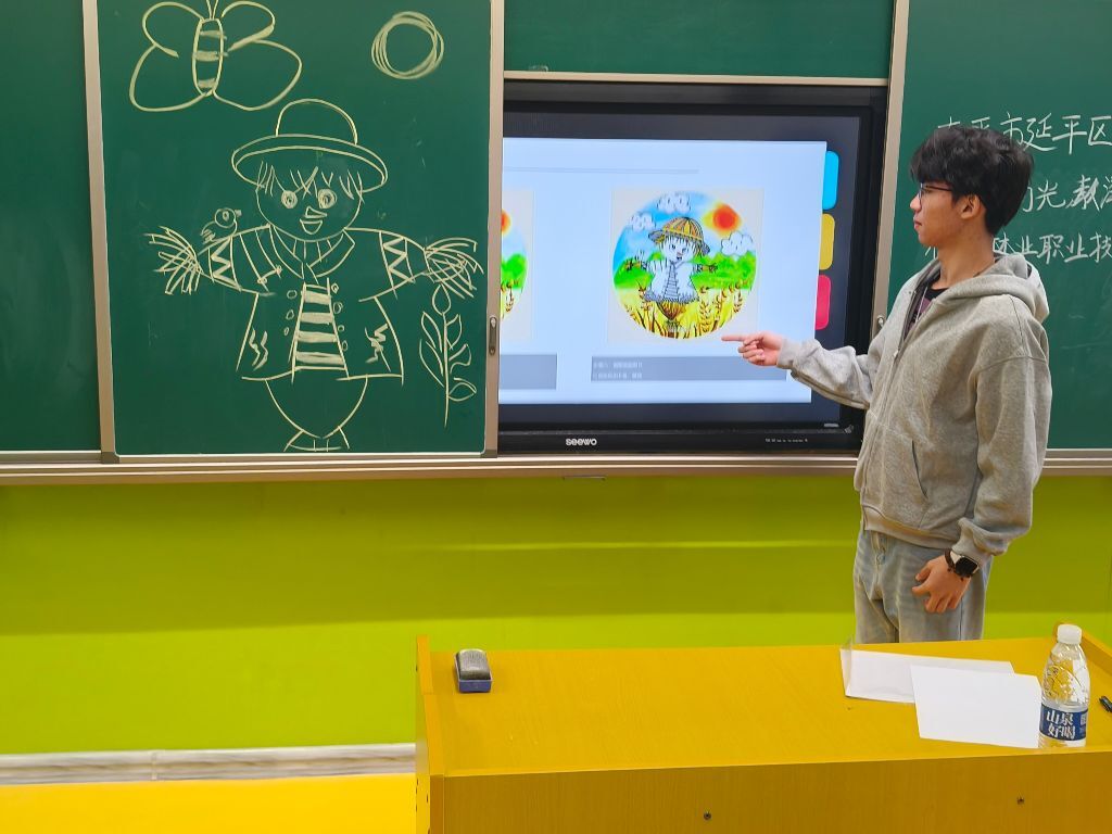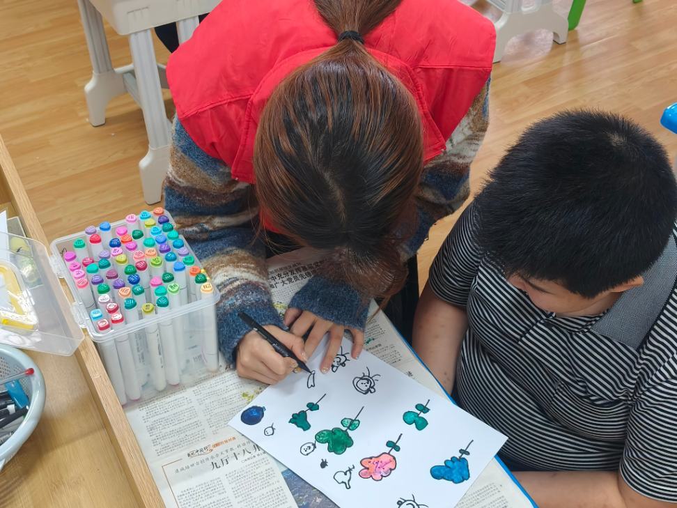 美术课上,支教志愿者以“我心中的小怪兽’为切入点,首先是带领孩子们认识各种各样的小怪兽,主要认识小怪兽的外形、颜色和表情等。随后,志愿者鼓励孩子们大胆想象,画出独一无二的怪兽朋友:有的孩子画出了长着翅膀的彩虹兽,有的画出了会发光的星星怪,还有的画出了戴着帽子的稻草人。在志愿者们的耐心陪伴下,孩子们利用色彩表达了自己的情感,用画笔讲述了想象中的故事。一幅幅充满童真与个性的画作,不仅是创意的绽放,更是心灵的对话。
