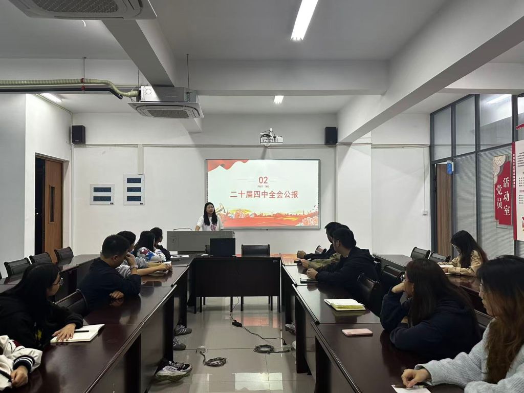 通过学习,支部全体党员和积极分子深受教育和鼓舞。大家纷纷表示,要将学习贯彻党的二十届四中全会精神作为当前和今后一个时期的重要政治任务,深刻领悟“两个确立”的决定性意义,增强“四个意识”、坚定“四个自信”、做到“两个维护”。要自觉将个人理想融入国家和民族的事业中,夯实专业基础,锤炼过硬本领,勇于担当作为,以实际行动响应党的号召,为实现“十五五”规划目标和中华民族伟大复兴的中国梦贡献青春力量。