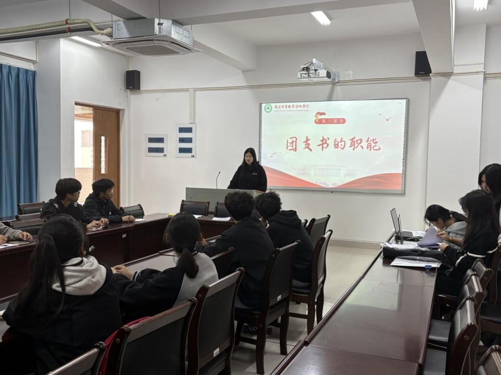 本网讯/为帮助2025级新生团支书快速熟悉工作内容、明确职责定位,提升基层团组织工作能力,11月4日,福建林业职业技术学院建筑工程系组织开展2025-2026 学年第一学期新生团支书培训会。本次培训会围绕团支书核心职能、团组织日常建设、团日活动开展等关键内容展开,为新生团支书们送上了一份“工作指南”。