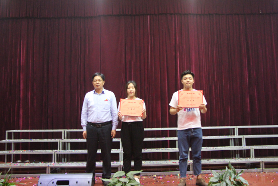 各系团总支负责人分别给获得一、二、三等奖的班级颁发荣誉证书
