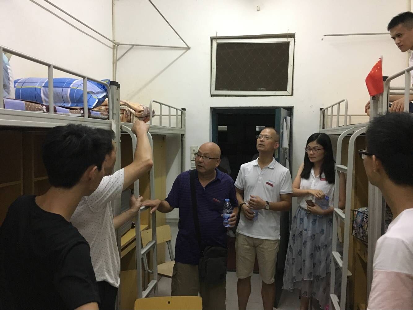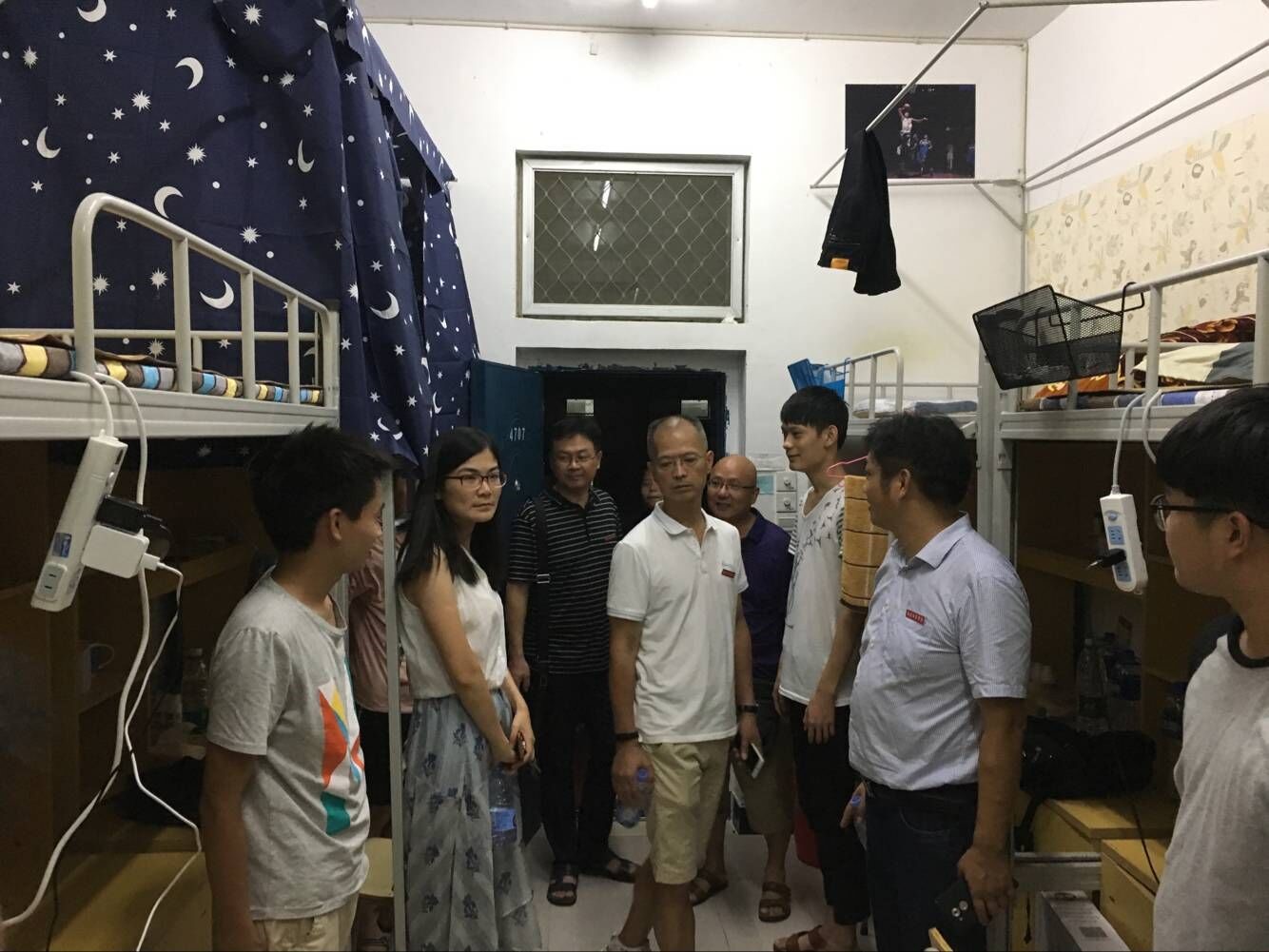 在一天的忙碌过后,6日当晚19点整由建工系郑金兴、王云彪、彭忠伟、丁灵妍、魏嘉雪老师带领各班级助导、舍导前往各新生宿舍探望新生并检查新生的安顿情况,并鼓励学生们舍友间要团结友爱互帮互助,要保持积极向上乐观开朗的心态迎接新的校园生活。