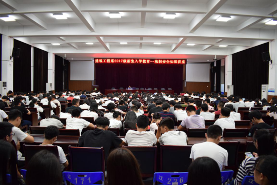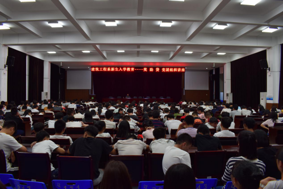 为了新生能够更好的适应大学生活,营造良好的校园环境。建筑工程系于2017年9月18日晚,在江南礼堂为2017级新生开了一堂“建筑工程系新生入学教育——法制安全知识讲座、奖助贷、党团组织讲座”的主题活动。系党总支书记王云彪、专兼职辅导员以及全体2017级新生出席会议,讲座由王云彪书记主持。