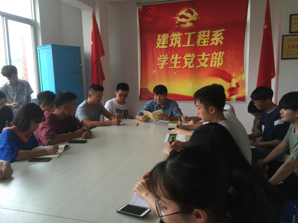 建筑工程系组织部在我院三号学生公寓楼三楼的党员活动室开展积极分子学习活动。由我系组织部带领我系的学生党员,积极分子们在党员活动室中学习党的新知识,党员活动室的党员边学习,边讨论,气氛活跃,效果良好。每一位同学都发表自己的心得看法。