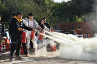 活动最后,保卫科科长胡宗焕老师讲解了防火防灾注意事项以及相关消防器材使用方法,并进行灭火器实操演练。在认真听讲及观摩后,老师和学生们亲自体验了现场灭火的过程,胡宗焕老师当场纠正了部分同学在操作中存在的问题和不足。