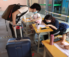 “同学们,你好!欢迎回家,请出示健康码,前后保持1米距离”,从学生入校到体温测量,从健康核验到信息登记,从换领口罩到行李消杀,建工系老师们工作有条不紊。返校学生经过一系列严格的防疫核查流程,进入久别的校园里。
