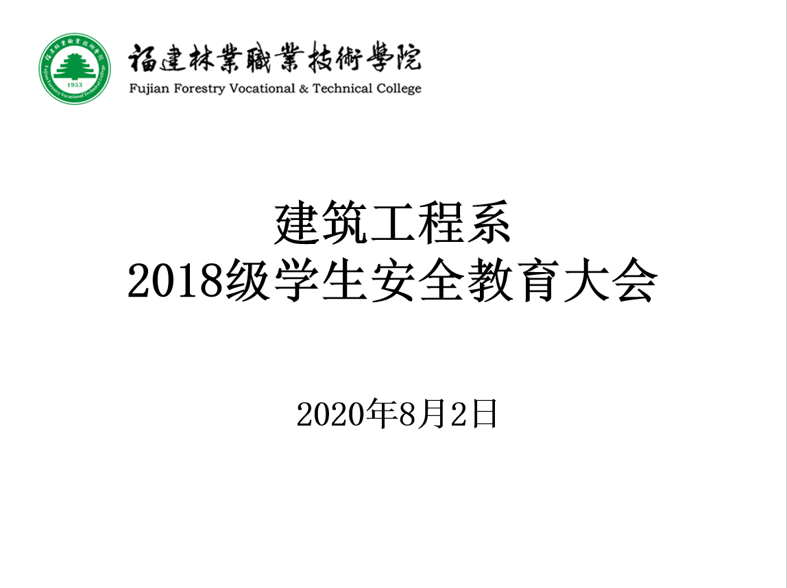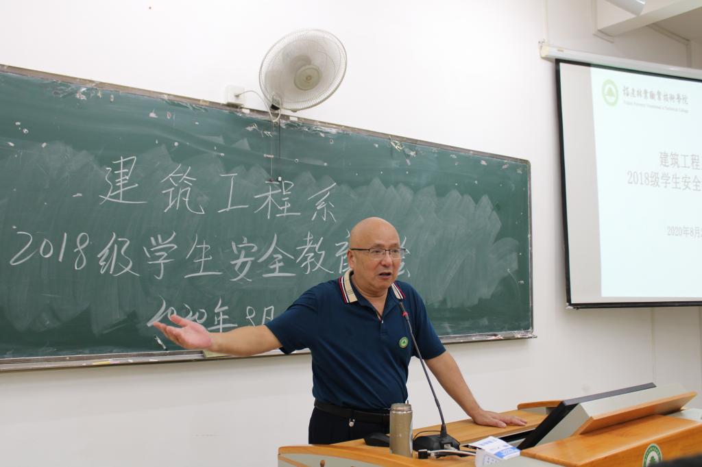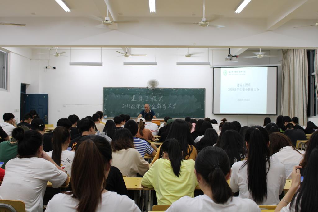 本网讯|为引导18级大三学生在即将步入顶岗实习之际,遵纪守法,提高安全和自我保护意识,珍爱幸福人生。8月2日晚上7点,建筑工程系在实训四510为本系2018级在校全体学生开展了一场以“安全教育”为主题的大会,系党总支书记王云彪、系学生科科长陆晓莉及辅导员万燕老师出席了本次活动,大会由王云彪书记主持。