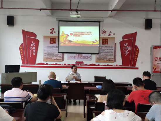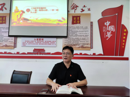 之后,组织专员温全军老师带领师生党员共同学习《习近平谈治国理政》第三卷及《习近平在福州》。温老师以《增强推进党的政治建设的自觉性和坚定性》、《用新时代中国特色社会主义思想铸魂育人》及《一餐一饭系心间,一举一动为人民》等篇章为例,结合实际案例,深入浅出地讲解了加强党的政治建设的重要性,阐述了习近平总书记“坚决制止餐饮浪费行为,切实培养节约习惯”的重要指示精神内涵,以及如何用新时代中国特色社会主义思想铸魂育人等。温老师指出作为教师党员,充分发挥先锋模范带头作用,坚持“浪费可耻,节约为荣”的原则,培养学生勤俭节约良好美德,共同为粮食安全的守护贡献自己的绵薄之力。