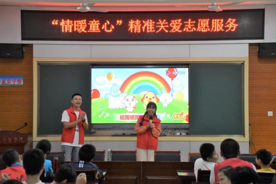 9月29日下午,在中秋节和国庆节即将到来之际,建筑工程系学生科科长兼团总支书记陆晓莉老师和“筑梦”小分队的志愿者们一同前往开智学校,开展支教活动。本次支教活动共招募到志愿者20余人,面向学校不同年级的学生进行爱国主义和中华传统文化的知识普及。课堂教学结束后,志愿者们在多媒体教室面向全校的孩子们进行文明行为的礼仪教学,并教唱歌曲《祖国祖国我爱你》,同时分发了精心准备的小礼品,孩子们兴致高昂,现场气氛温馨、热烈。