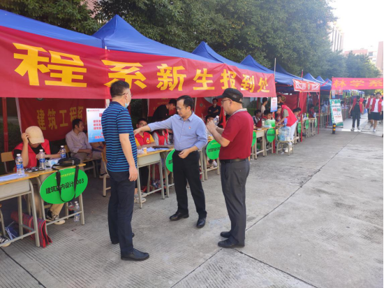 本网讯 10月10日,我系迎新工作如火如荼的进行,院纪检书记林建斌、副院长谢金生深入建筑工程系迎新一线指导检查工作,并看望2020级新生、家长及一线迎新工作者。