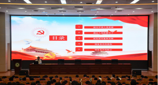 讲座上,辅导员温全军老师先为新生们介绍中国共产党的党史、党情、改革计划成果等党团知识,使同学们初步了解党务工作现状。接着,温老师着重讲解了发展党员工作的程序,让同学们对党员发展程序有了清晰认识,温老师教导新生要坚定不移地拥护支持党的领导,积极踊跃入党。最后,温老师向新生们详细介绍学校评先评优资助体系知识,温老师建议新生要早日树立人生规划,学好专业知识,积极投身到丰富多彩的大学校园文化活动中。