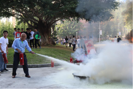 演练最后,安保处老师向学生们讲解了防火防灾注意事项以及消防器材使用方法,并现场示范如何使用灭火器。在认真听讲及观摩后,部分同学亲自体验现场灭火的过程,安保处老师当场纠正了同学们操作中存在的问题和不足之处。