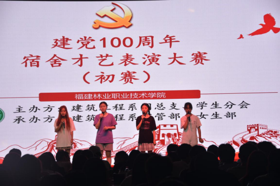 本网讯 为庆祝中国共产党成立100周年,深入贯彻落实习近平总书记关于深入开展爱国卫生运动的重要讲话精神和教育部等八部门下发的《关于加快构建高校思想政治工作体系的意见》,落实立德树人根本任务,提高学生文明素养和文化修养,进一步营造绿色、健康、文明、和谐的育人环境,2021年5月,建筑工程系在江南礼堂举办宿舍才艺大赛,本次才艺大赛以“庆祝建党100周年”为主题,面向建筑工程系全体学子。比赛由建筑工程系团总支主办、系宿管部和女生部联合承办,学生会主席团及两委会各部门部长担任评委。