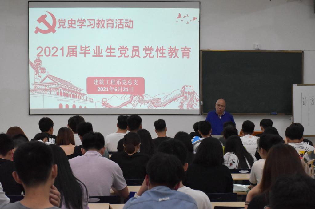 本网讯 为巩固毕业生党员在迈向新征程时依然牢记初心使命,树立“永做有坚定信仰、有使命担当的共产党员”坚强意志,2021年6月21日19时,建筑工程系党总支在实训四210召开2021届毕业生党员党性教育会议。建筑工程系党总支书记王云彪,学生科科长兼团总支书记陆晓莉,专职组织员叶新颖,三个学生党支部书记林燕琼、吴文杰、温全军,辅导员代表陈晴等老师参加会议。