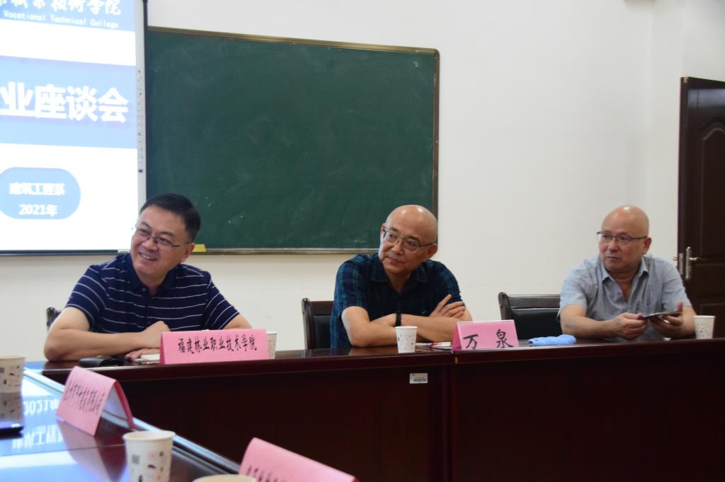学院党委书记万泉教授与企业代表们进行互动交流指出,福建林业职业技术学院立足闽北山区办学,人才培养定位为高职应用型实践性人才,办学目标就是为市场需求、为社会发展、为国家强盛培养高质量人才服务,学生一贯秉持“明思笃行业精德厚”林职校训,浸润“敬业吃苦务实进取”天麟精神,可塑性强,“上得了厅堂下得了厨房”,日常强化劳动教育精神,适应能力好,人才培养质量绝对可靠,期待企业一如既往为我院毕业生的实习、就业提供相应岗位机会,并希望能够通过优化薪酬待遇、人文关怀、企业文化、升职空间等方面内容增强企业对毕业生的吸引力,感召力,实现招到人、留住人、培养发展成就人。座谈会在热烈友好氛围中结束,万泉书记、建筑工程系人员和参会企业代表一起合影留念。