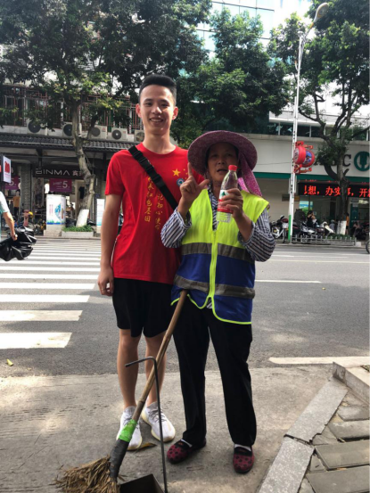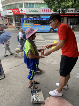 为劳动者送上一瓶水。夏日炎炎,劳动者们在烈日下为城市的正常运转而努力着,社会实践的队员们在长汀县各街道上寻找坚守岗位的防卫工人、快递员、外卖员,为他们送上属于夏日的一份清凉。