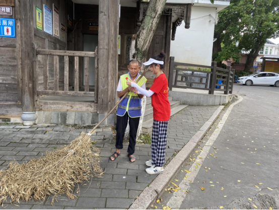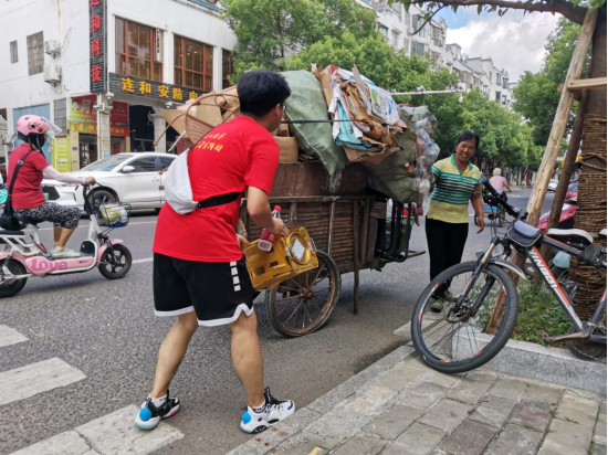 帮助一位困难群众。社会实践的队员们在街头发现需要帮助的群众,及时伸出援手,帮一把、扶一把。