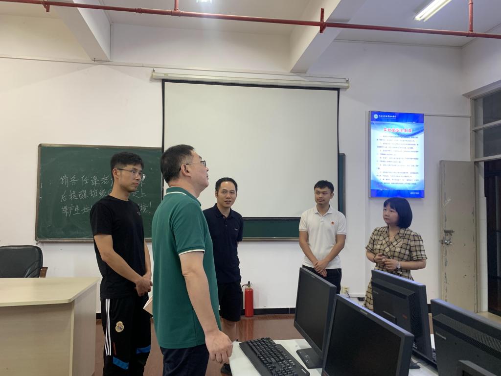 为加强我系实验实训室安全管理,切实做好新学期开学及教育厅安全处到校开展省级平安校园检查工作,9月6日上午,由系主任彭忠伟带队,系党总支书记王云彪及实训室专兼职实验员组成检查组,对全系实验实训室进行安全检查。检查组深入实验实训室,对规章制度、安全设施、环境卫生、安全教育、用水和用电安全等方面进行全面排查,查找问题,督促整改,并就加强实验实训室安全稳定工作提出意见。