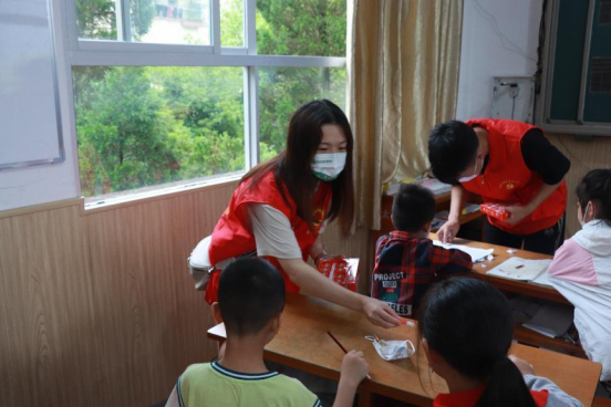 其余老师和志愿者们共同打扫学校学生活动场所并认真布置游戏的各个项目活动。在陈副校长的一声令下,游戏拉开了帷幕,身穿校服、佩戴红领巾的小学生们,一脸期待地走入游戏的世界,通过组织吹乒乓球、踢毽子、跳房子、投壶、套圈圈、螃蟹走等等游戏,孩子们快乐地参与其中,活动场所立刻变成了欢乐海洋。在玩游戏的过程中,孩子们体会到了团队合作的精神,更收获了快乐和新的友谊。参与游戏的孩子们感谢志愿者们的付出,并表示自己会刻苦学习,学好本领,将来回报社会,将这份爱心传递下去。看着孩子们灿烂的笑容,志愿者们心里感到十分开心。游戏过后,志愿者们主动亲近孩子,与他们细心交流,关心询问他们的学习、生活和健康情况。