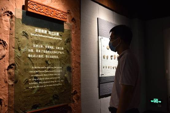 一行人员按照由左及右的顺序开始了正式的参观学习。综合主题馆是通过闽台的“五缘”关系,即地缘,血缘,法缘,商缘,文缘,分为七个部分来阐释台湾自古以来就是中国不可分割的领土。