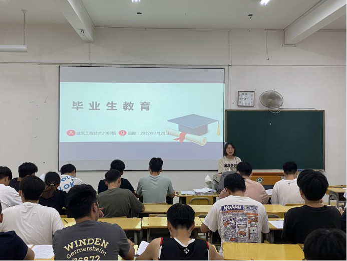 本网讯/为落实2023届毕业生顶岗实习工作,强化学生的安全意识,进一步增强岗位意识和生产安全意识,提升职业素养,确保学生在顶岗实习期间能够平稳安全地完成实习任务,2022年7月20日至7月22日,建筑工程系各辅导员组织班级学生召开2023届毕业生顶岗实习指导暨安全教育主题班会。