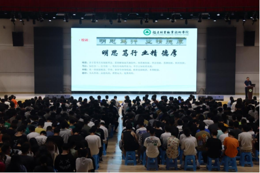 本网讯/为了促进新生们更好适应大学新生活,更详细的了解福建林业职业技术学院,建筑工程系于2022年9月24日晚在江南体育馆召开新生入学教育。出席本次新生入学教育的有:建筑工程系党总支书记王云彪、系主任彭忠伟、系党总支副书记魏长专、系副主任张李平、系教学科科长廖坤阳、环境工程教研室主任陈燕老师、建筑工程教研室主任陈龙老师、王兴老师、吴燕青老师、新生辅导员以及2022级全体新生。活动由系党总支副书记魏长专老师主持。