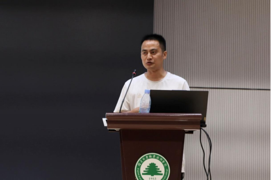 首先,彭忠伟主任向新生们表示热烈的欢迎,并开始简单明了的讲述校史系情,为同学们讲述了学校悠久的创建历史和所获荣誉。并逐一介绍了学院的办学条件、天麟校区和江南校区的校园环境、在校师生情况、专业建设及系部师资力量等情况。重点介绍了学院校徽的五层含义:一、一本书表示学海无涯苦作舟;二、树木树人的办学理念;三、“森”表示学院林业的特质和学子千千万万;四、“丰”表示学院丰硕成果;五、“峰”表示勇攀高峰的大学精神和创新精神。由此引出校训:明思笃行,业精德厚,敬业吃苦,务实进取。