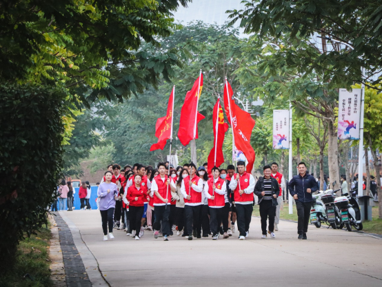 紧接着由我系党总支书记王云彪授旗给系学生代表,并宣布晨跑正式开始。建筑工程系师生代表一起,从田径场出发,井然有序开始环校园道路晨跑。