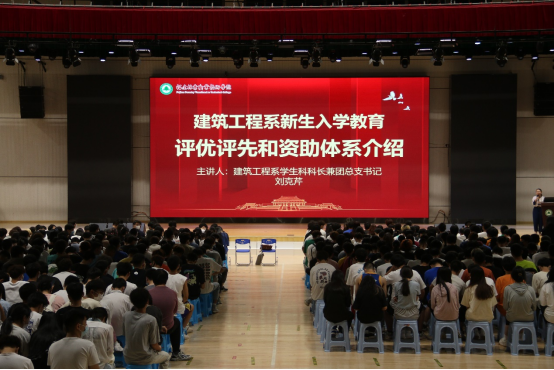 本网讯/为全面贯彻立德树人根本任务,精准落实国家、学校资助政策,把党和国家对家庭经济困难学生的关怀落实落细,建筑工程系以“培育和践行社会主义核心价值观”为核心,以“精准资助和资助育人”为主题于 9月28日晚在江南体育馆举办了第二场新生入学教育之资助专题讲座,本次新生入学教育讲座由系学生科科长兼团总支书记刘克芹老师主讲。