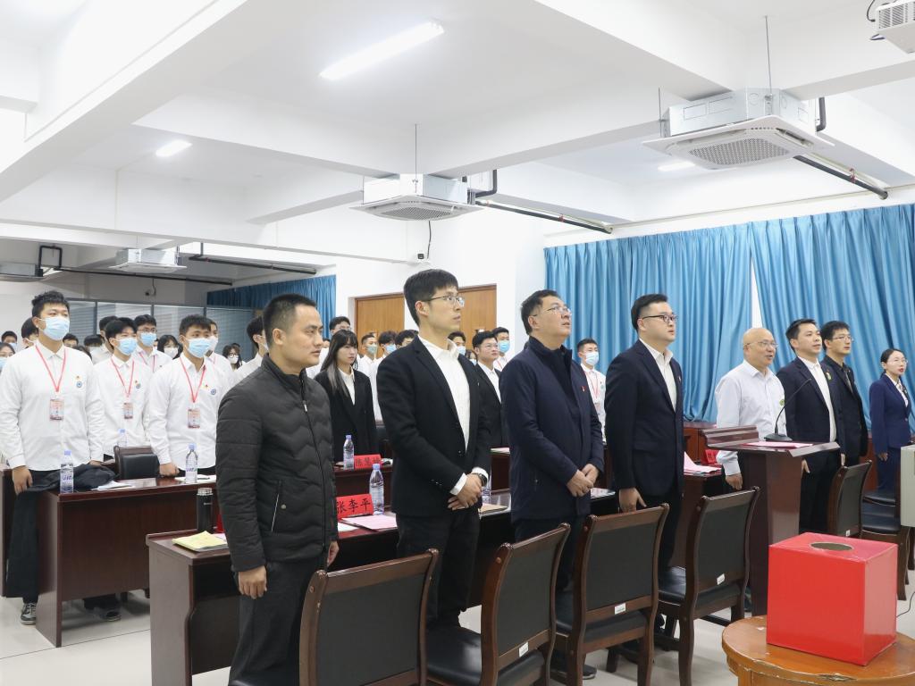 15:00,大会奏响中华人民共和国国歌,会议开幕式在全体师生雄壮激昂的国歌声中拉开帷幕。建筑工程系党总支副书记魏长专老师代表建筑工程系党总支向大会宣读系党总支批复。
