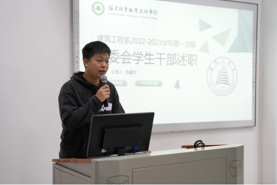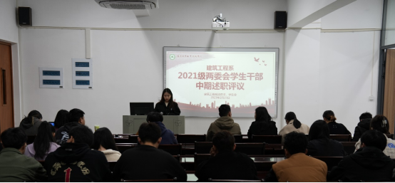 本网讯/为深入学习宣传贯彻党的二十大精神,总结反思上一学期两委会各部门在服务同学、履行职责等方面的经验与不足,进一步提高学生干部责任意识、服务意识、大局意识,持续提升我系团学工作质量,2023年2月23日晚在建工楼五楼会议室举办建筑工程系2021级两委会学生干部述职评议。本次述职评议由两委会主席团、各部门部长分别代表各自分管部门述职,系党总支副书记(主持工作)魏长专,系学生科科长兼团总支书记刘克芹及各辅导员老师担任评委,两委会各部门部分代表参与学习。