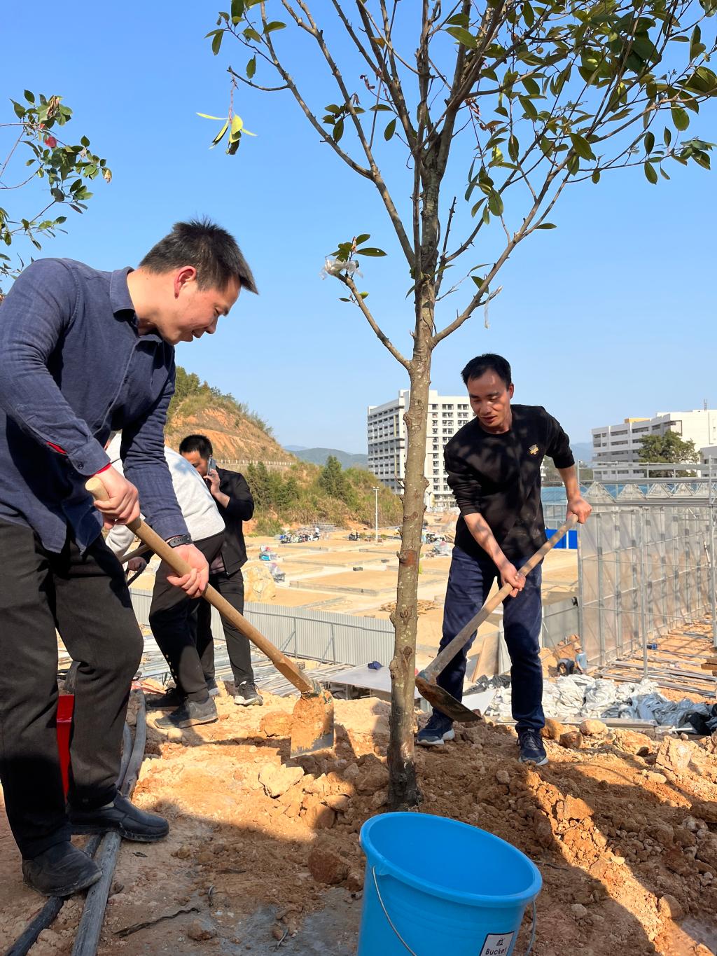 建筑工程系全体师生党员在园林综合实训基地开展此次植树节种植活动,共计种植40棵红叶石楠。活动现场,大家分工协作,党员们撸起袖子挥锹铲土、种植树苗再填坑、踩土浇水夯实,干劲十足。虽然裤腿上沾满了泥土、脸颊流下汗珠,但每个人都流露出愉悦的表情,纷纷表示,通过植树节活动增强了自身保护环境、保护大自然的意识,今后将以实际行动积极践行“绿水青山就是金山银山”发展理念,力求为生态环境改善贡献自己的一份力量,为美丽家园建设承担一份责任。