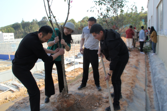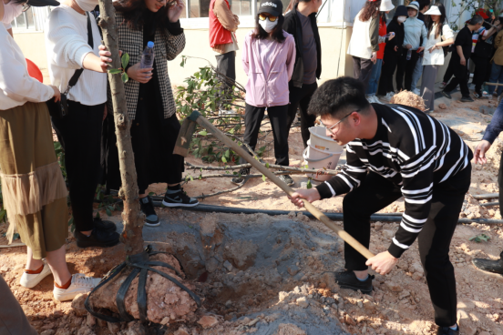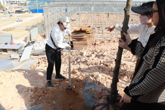 建筑工程系全体师生党员在园林综合实训基地参与此次种植活动,共计40棵红叶石楠。本次主题党日活动,以“植”为主题将种植、探索、体验和传承相结合,旨在通过开展实践活动,增强党员们的凝聚力和向心力。党员们干劲十足,大家挥铁锹、挖坑、植树、铲土,分工有序,齐心协力将一棵棵充满希望的树木栽入土壤中,现场一片热火朝天的景象。在大家的共同努力下,红叶石楠顺利生长在了我院的土地上。种树培根,育人养心,劳作的过程让党员们领悟到劳动的意义,更加珍惜生活中的一草一木,并纷纷表达对校园绿化的美好愿景。