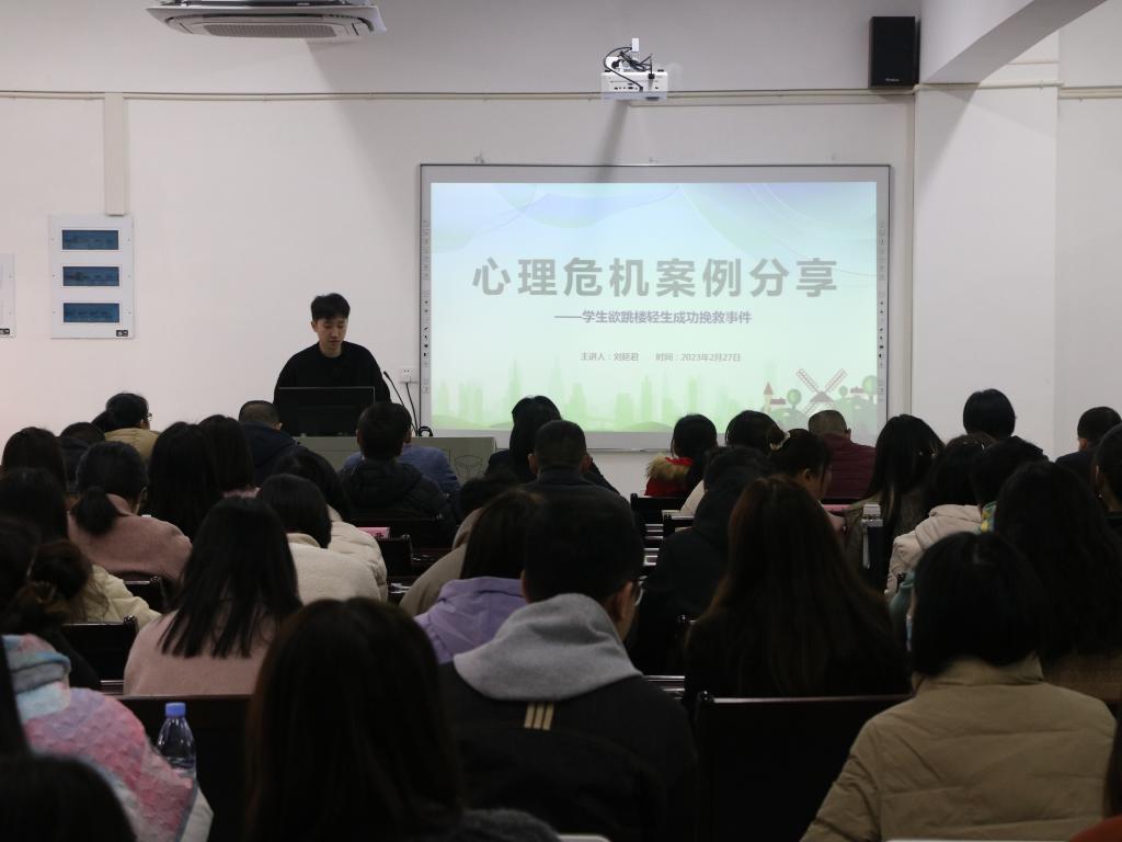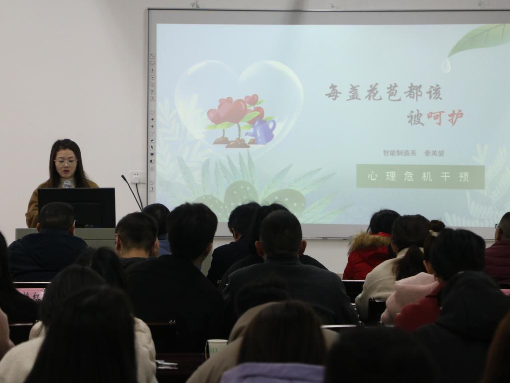 最后,严绍裕副书记对开展心理危机干预工作提出三点建议。一是动态开展心理摸排,确保底数清晰。一方面,要形成“专业心理老师—系部学工队伍—班级心理委员/班干部—学生宿舍舍长”为主的四级联动体系,解决谁来摸排的问题;另一方面,针对怎么摸排的问题,一要加强自查,在摸排中鼓励学生通过心理量表进行定期自我评估,对自身心理状况进行自检自查;二要关注学生日常学业情况、寝室关系、人际关系、家庭亲子关系等,观察、了解学生的实时心态状况,同时开展家校联动,实现“辅导员—班干部—舍长—家长亲属”协同;三要全面评估,对自查与日常观察中掌握的信息、发现的问题进行综合分析、研判分类。二是分类开展疏导干预,确保对症下药。要分析找出导致心理问题的原因,再分类施策、对症下药;要倡导一线工作法,用心用情关心关爱问题学生,解决学生的心理问题与解决学生的实际问题相结合。三是精准实施重症管理,确保安全稳定。健全和落实“学院—学工部—系部—学生骨干”四级责任体系。