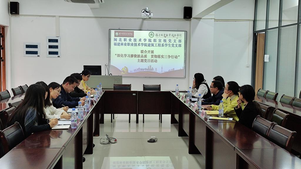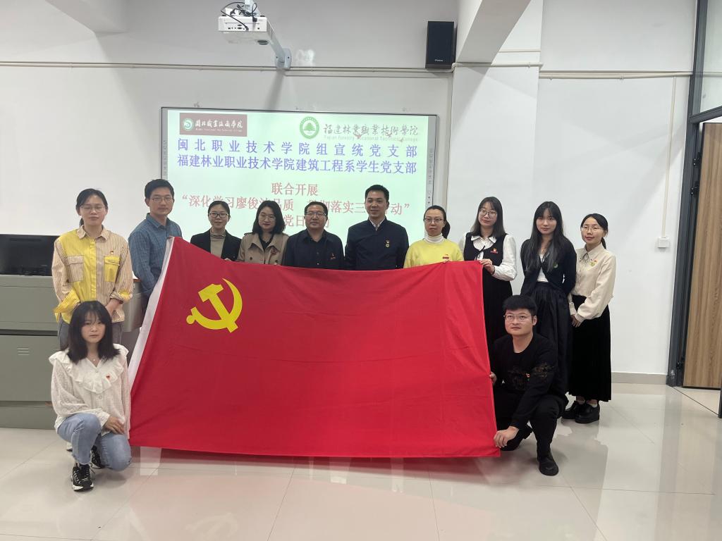 为进一步弘扬廖俊波优秀品质,积极贯彻“深学争优、敢为争先、实干争效”行动,2023年4月13日,闽北职业技术学院组宣统党支部到我系同系学生党支部联合开展“深化学习廖俊波品质、贯彻落实‘三争’行动”主题党日活动。闽北职业技术学院党委委员、组织部(统战部)部长蔡军、建筑工程系党总支书记魏长专出席活动,闽北职业技术学院组宣统党支部全体党员、建筑工程系专职组织员叶新颖、学生科科长兼团总支书记刘克芹、系各学生党支部书记等参加了活动。