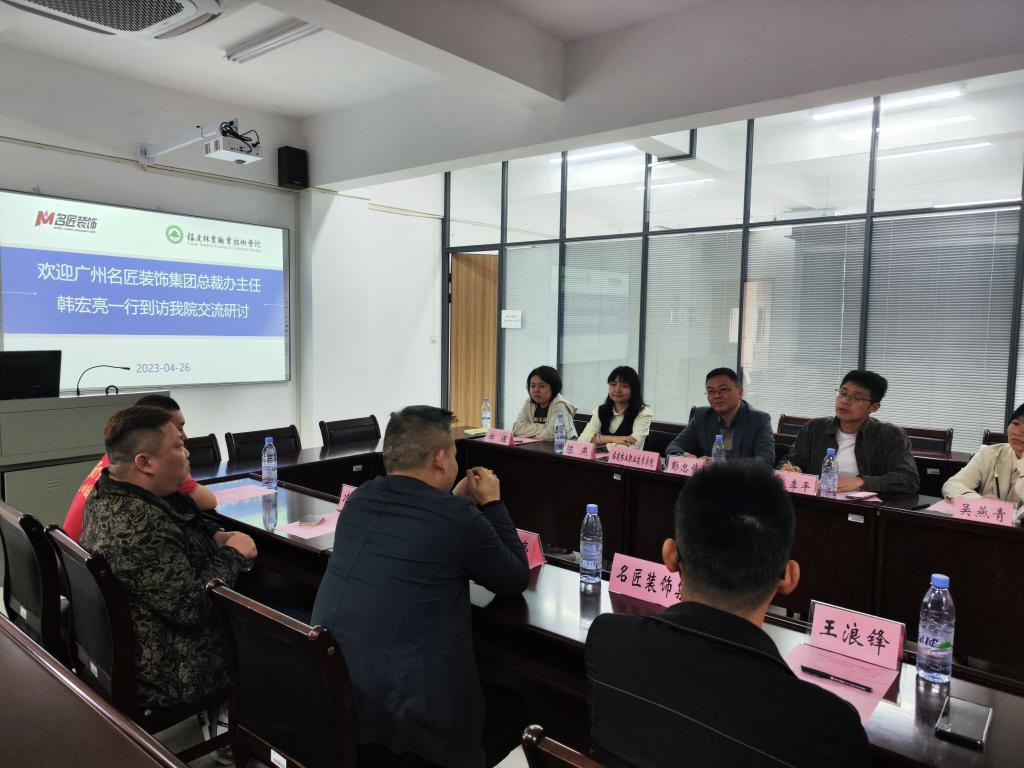 2023年4月26日,广州名匠装饰集团总裁办主任韩宏亮、福建大区总经理冷杰、总裁办人力资源专员王浪锋一行来我院建筑工程系调研交流。建筑工程系主任彭忠伟、副主任张李平、环境工程教研室主任陈燕、专业带头人吴燕青、专业骨干教师郑煜参加本次活动。