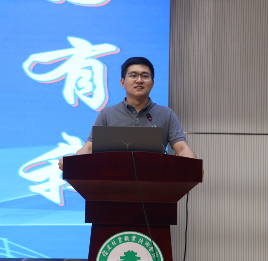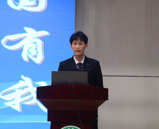 会议第三项议程由学生代表黄宇煊发言。他表示本次技能活动月为同学们提供了绝佳的展示平台,它帮助我们将课堂上抽象的理论知识应用于具体实际操作中,将我们对专业的热爱转化为实际,相信在此次技能活动月中一定会涌现出许多人才,在自己的专业中发光发热!