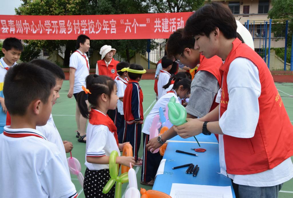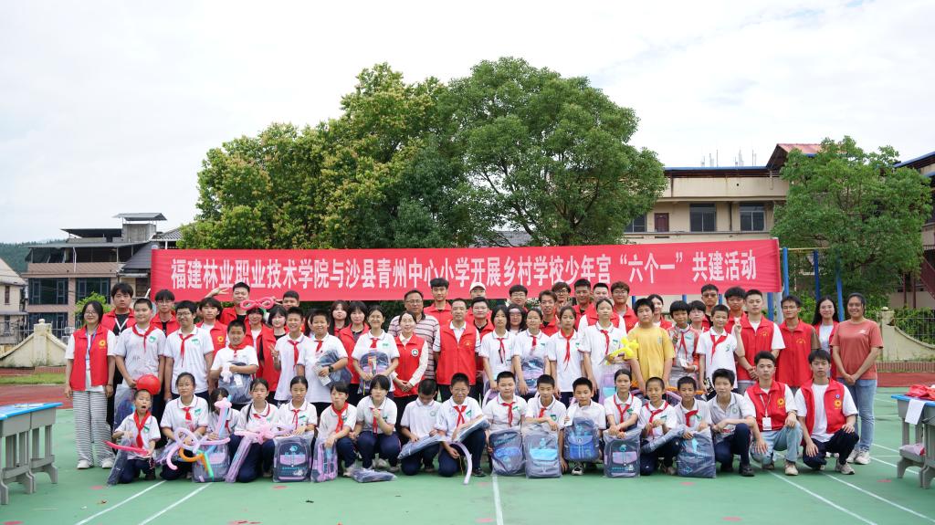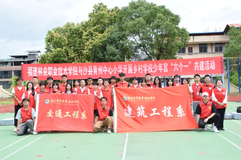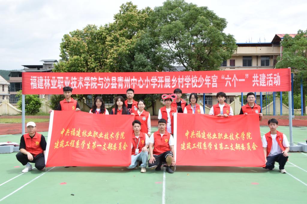 本网讯/童心向党、快乐成长。为充分发挥文明校园人才资源优势,助力乡村学校少年宫的建设不断上水平出实效。2023年6月19日,福建林业职业技术学院建筑工程系学生第一党支部、第二党支部携手交通工程系学生第一党支部、第二党支部共赴沙县青州中心小学开展乡村学校少年宫“六个一”共建活动,让孩子们享受着属于他们的欢乐盛宴。