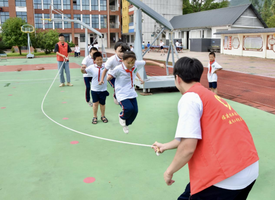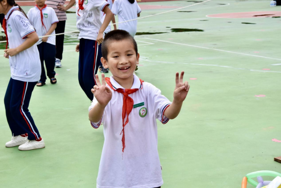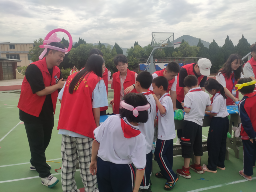 在成语接龙环节里,小朋友们充分发挥自己的聪明才智,积极配合志愿者作答;在四人五足和跳大绳环节中,大家一起体会了团结的力量,培养了小朋友们的团队协作能力。活动的各个环节有序进行,小朋友们积极配合,操场上到处都洋溢着志愿者和小朋友们的欢声笑语。