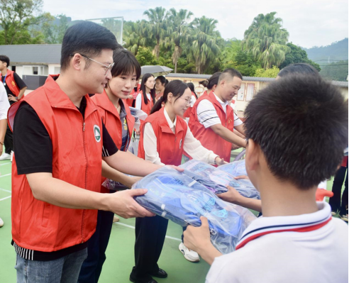 活动接近尾声,志愿者们将书包、文具送到小朋友们手中,并与小朋友们一起互动、交流,志愿者老师们还分别到教室里与小学生们亲切互动,鼓励正在准备期末考试的小同学们要好好学习,天天向上。小朋友们纷纷表示,将心怀感恩之心,努力学习,立志成为对国家、对社会有用之人。