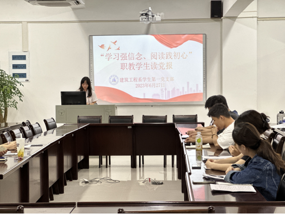 建筑工程系学生第一党支部书记陈慧婷带大家共同领读了人民日报相关文章,结合自身学习和工作经历,畅谈了阅读收获和启示。