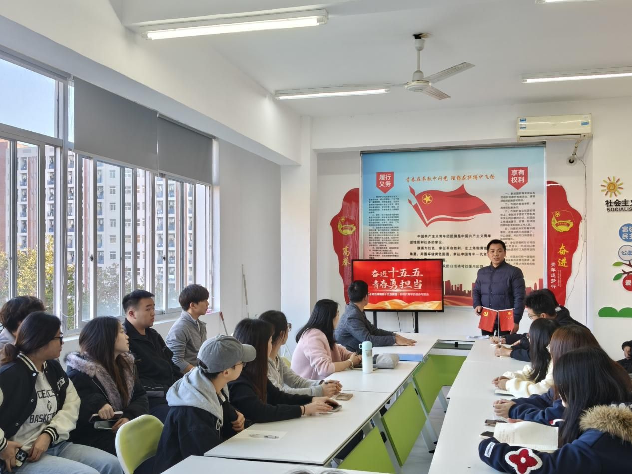 党课伊始,魏长专书记围绕党的二十届四中全会精神,深入剖析了“十五五”规划的时代背景与重大意义。他指出,“十五五”时期是我国全面建设社会主义现代化国家的关键阶段,对于实现第二个百年奋斗目标具有承前启后的重要作用。青年学生作为国家的未来、民族的希望,肩负着推动国家发展、实现民族复兴的历史使命。在这个充满机遇与挑战的时代,广大青年要紧跟时代步伐,将个人理想融入国家发展大局,以青春之我、奋斗之我,为国家的繁荣富强贡献力量。