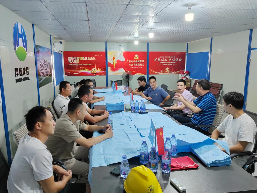党员教师来到项目部会议室,由项目经理部崔裕平经理向大家介绍项目的总体施工进展,并就工程施工的特点及当前存在的一些技术重难点进行了详细的讲解。随后双方就工程施工图纸进行深入的交流和探讨。会后,在崔经理的带领下,党员教师们冒着烈日来到施工现场,实地了解预制管桩施工及锚杆钻孔灌注桩等施工工艺。在现场,党员教师们与现场施工技术人员相互交流质量、安全管理心得。