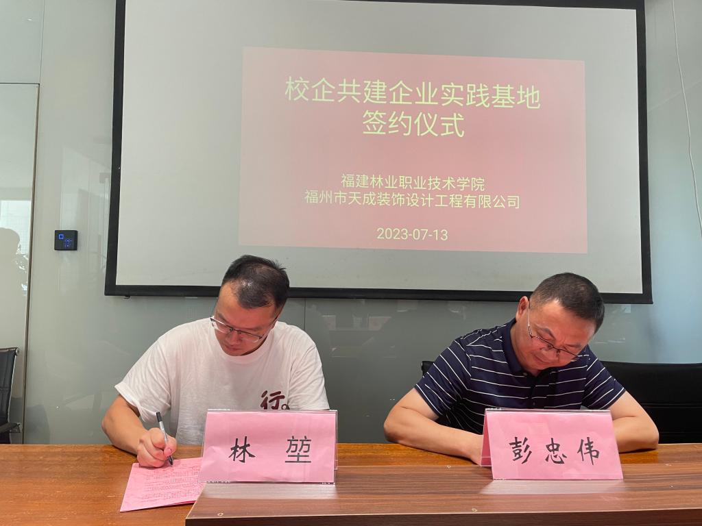会后,双方在福州市天成装饰设计工程有限公司会议室举行简短的校企共建企业实践基地签约仪式。本次校企交流合作,将进一步加强建筑工程系技能人才队伍建设,提高系部教师的实践教学能力,实现校企优势资源的共享。