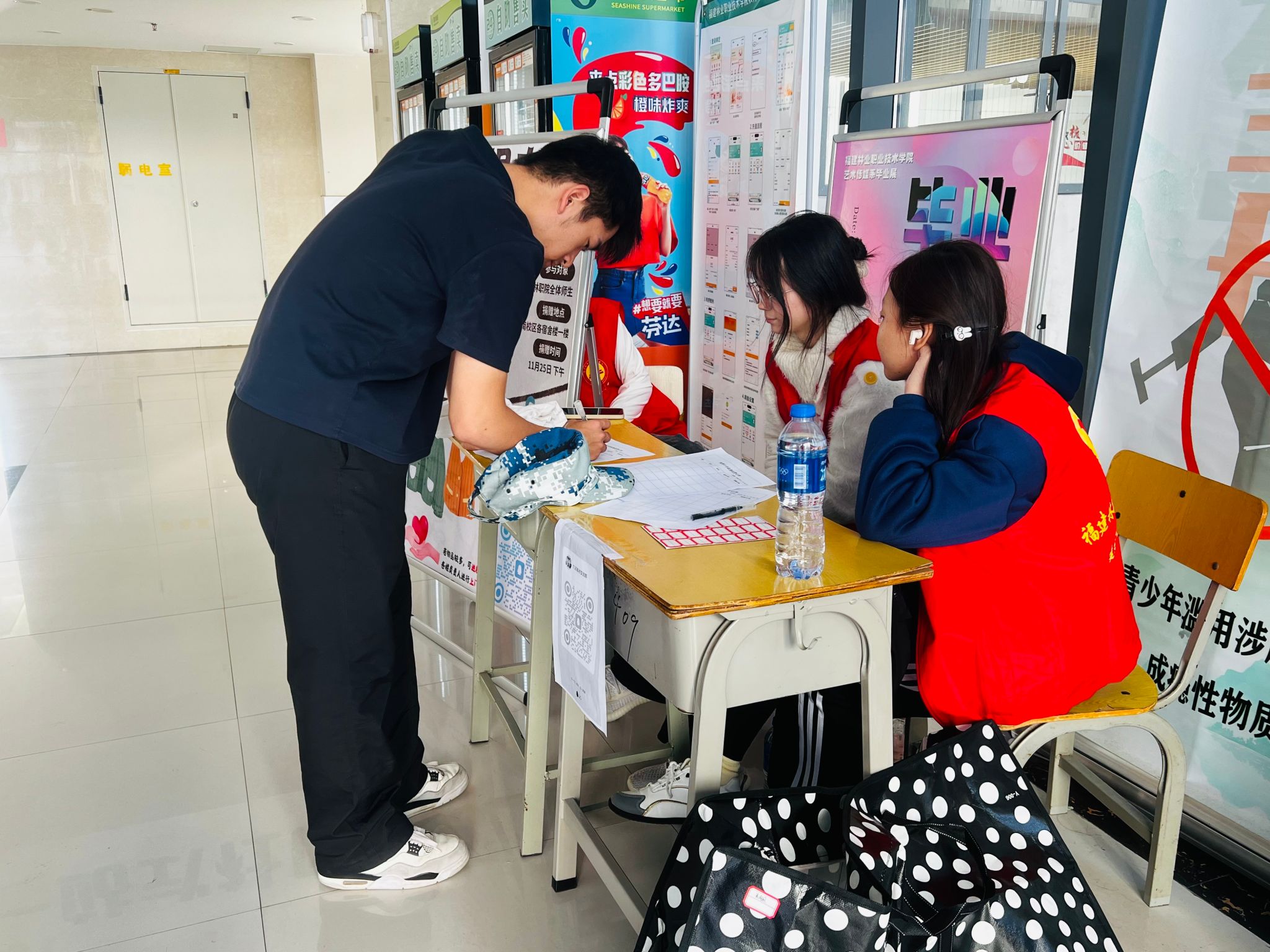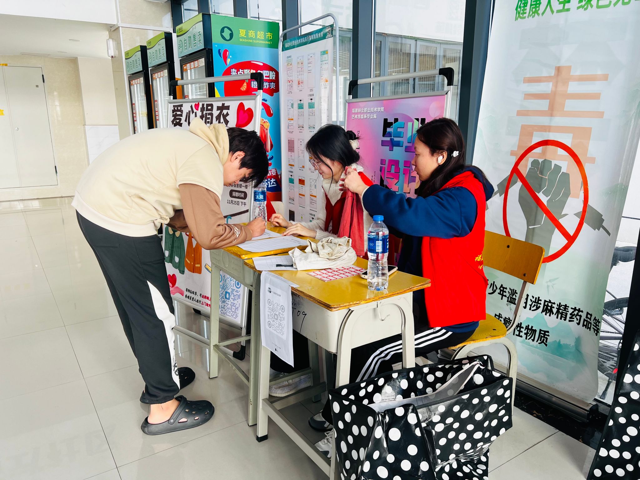 志愿服务的身影,是活动中最动人的风景。志愿者们始终坚守岗位、分工协作,以饱满的热情和耐心的态度接待每一位前来捐赠的师生。面对咨询,他们细致解答、耐心引导;协助填写捐赠信息时,他们认真严谨、一丝不苟;整理衣物时,他们逐件清点、分类打包,将一件件衣物叠得方方正正,封装成袋。一袋袋沉甸甸的衣物,不仅是爱心的汇聚,更是希望的延续,彰显着林职院学子助人为乐、甘于奉献的青春风采。