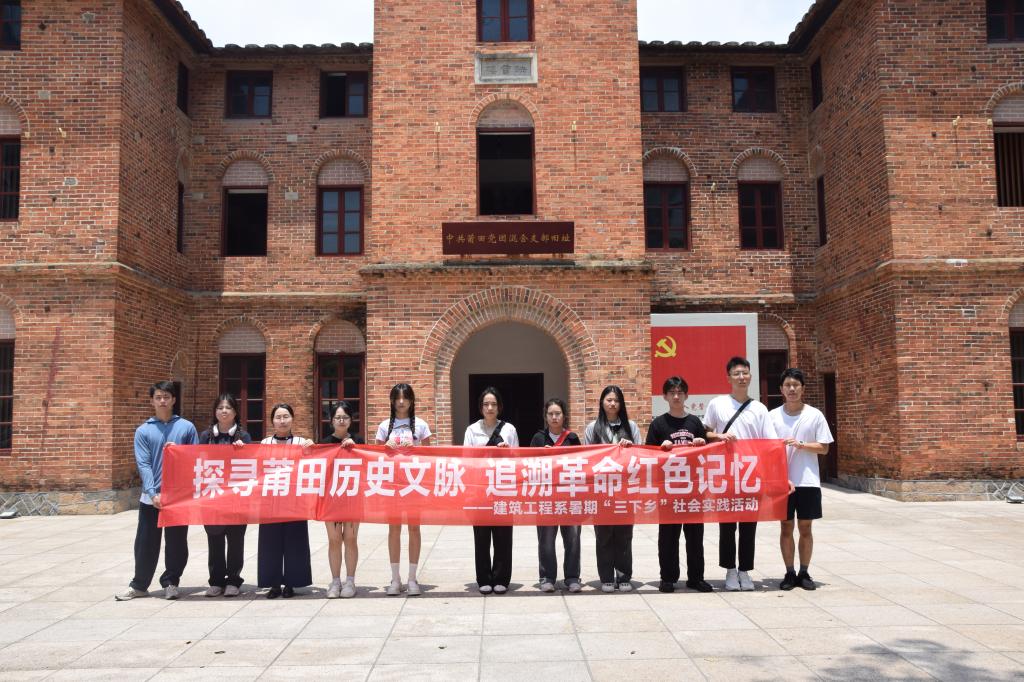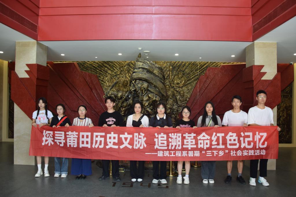 2023年7月8日至7月12日,来自建筑工程系的12名青年学子组成“筑梦”社会实践团,以“探寻莆田历史文脉,追溯革命红色记忆”为主题,在系学生科科长兼团总支书记刘克芹老师、辅导员丁雨涵老师的带领下,走进莆田,通过缅怀革命先烈,研学莆田历史文化,寻访闽中古建筑及学习古建筑保护、利用和传承模式,更好地赓续红色血脉,守护文化根脉。